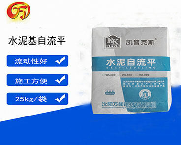 水泥自流平是我廠沈陽萬隆建材有限公司生產(chǎn)的地面找平材料,在施工過程當中只需要加水攪拌均勻即可施工,非常方便,在施工前需要搭配地固來處理地面后,進行自流平施工。